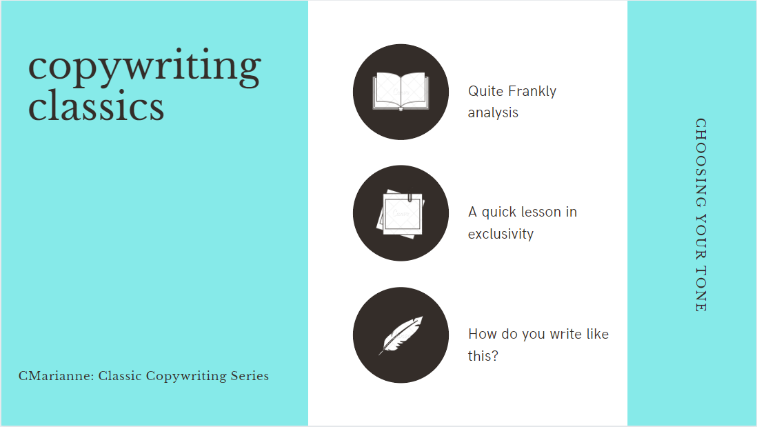 It’s time to wrap up our exploration of how master copywriters have used tone to reach out to prospects and make millions for their clients.