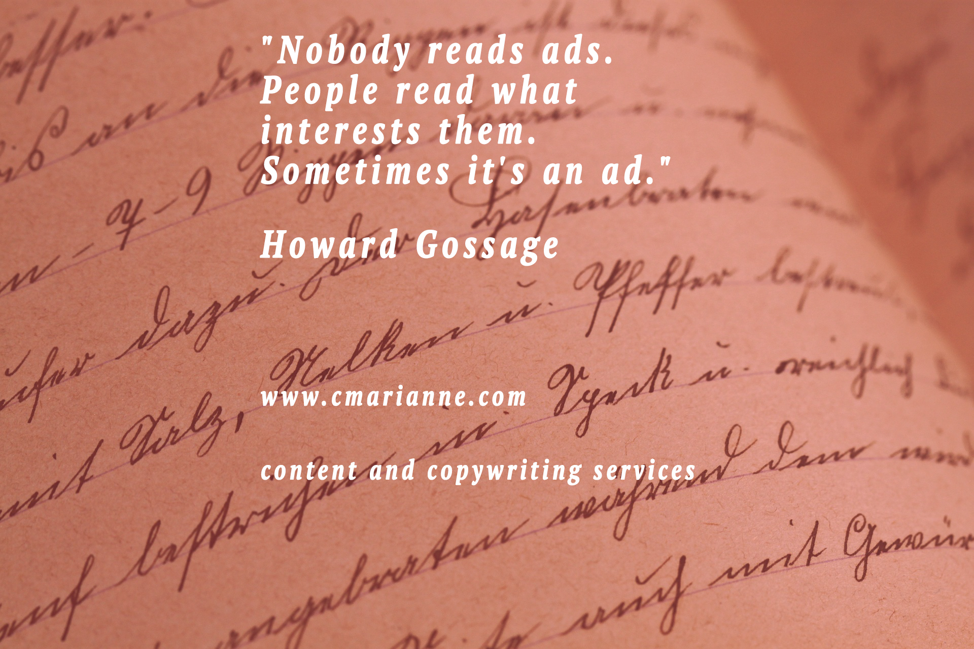 It’s true. Nobody reads ads. People read interesting, informative and entertaining content. That might be connected to a brand. Nobody sits down at their computer, with their phone or with a stack of junk mail and invests their time and energy going through it.